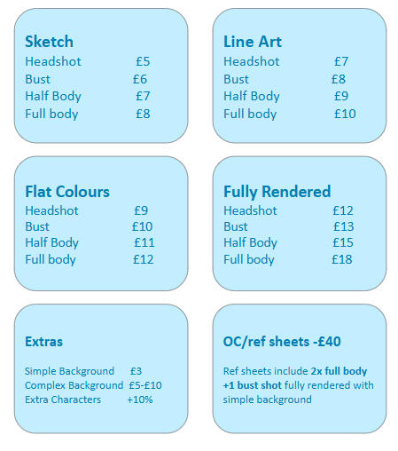 1x half body, fully rendered,+ simple background = £20